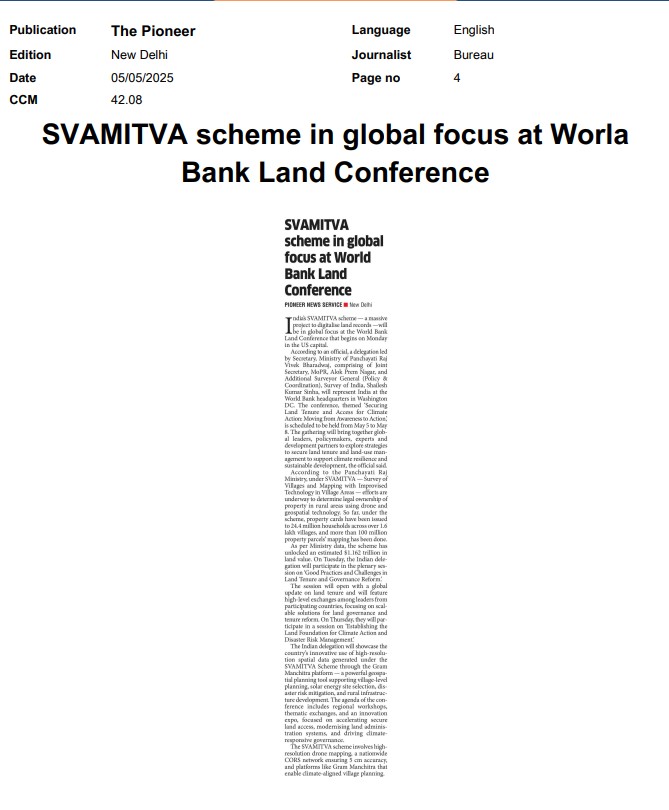 SVAMITVA scheme in global focus at World Bank Land Conference (The Pioneer)